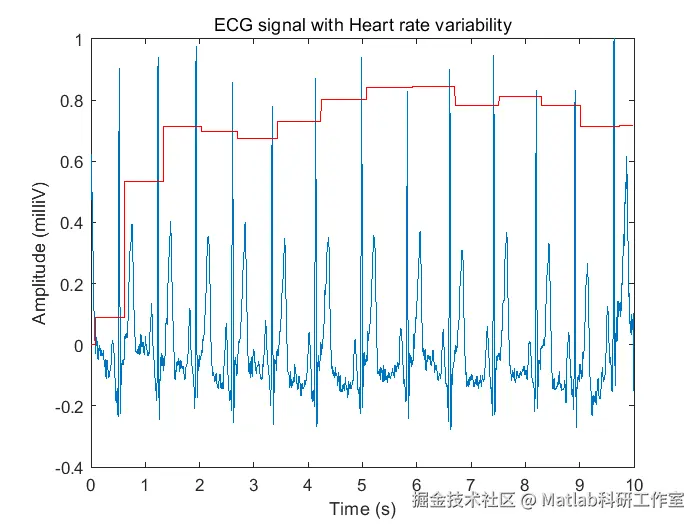 【心率检测】 心电信号(ECG)处理从原始 ECG 数据中提取 R 波峰值、计算心率(HR)与心率变异性(HRV)Matlab代码