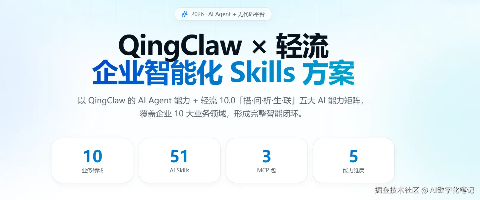 核心 AI 能力(QingClaw + 轻流 MCP)