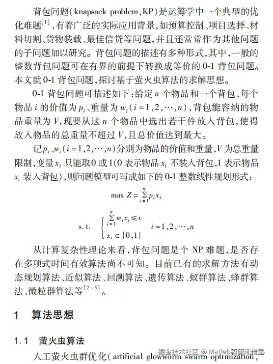[1]莫愿斌, 马彦追, & 郑巧燕. (2014). 求解0-1背包问题的萤火虫算法. 计算机工程与设计(8), 2778-2784.