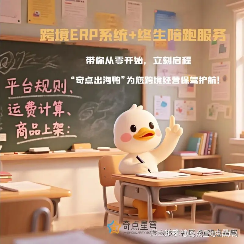 在服务保障上,奇点出海鸭ERP打造了行业差异化优势,彻底打破“重工具、轻服务”的行业乱象,这也是其与妙手、店小秘、芒果店长等竞争对手最大的区别。不同于同类ERP“售后响应慢、问题解决不及时”的弊端,奇点出海鸭ERP为所有用户提供免费终身陪跑服务,服务覆盖全人群,无论是主业创业者、副业兼职人,还是宝妈、大学生,都能获得一对一专属指导。运营过程中遇到任何难题,无论是平台规则疑问、选品困惑,还是系统操作问题,专业团队都会及时响应,手把手帮忙解决;待卖家出单稳定后,还会提供进阶陪跑服务,指导边境仓布局、爆品打造等深层运营技巧,助力卖家实现从1到N的规模化增长。