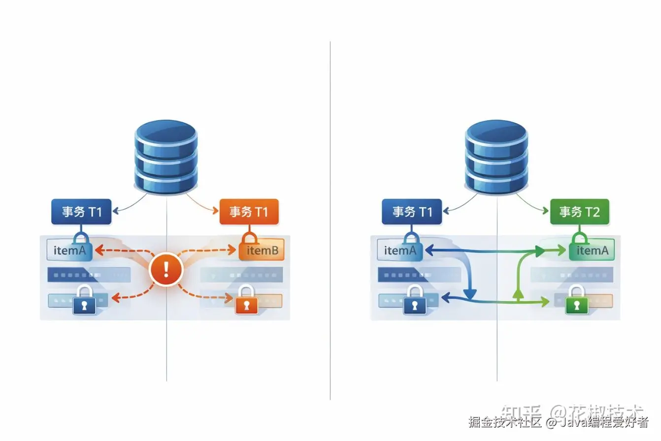 而本次线上实际出现的是 Deadlock found when trying to get lock。这说明事务失败点发生在“拿锁阶段”,而不是“唯一键校验阶段”。因此,问题本质不是主键或唯一键冲突,而是锁顺序与锁粒度导致的互相等待。
