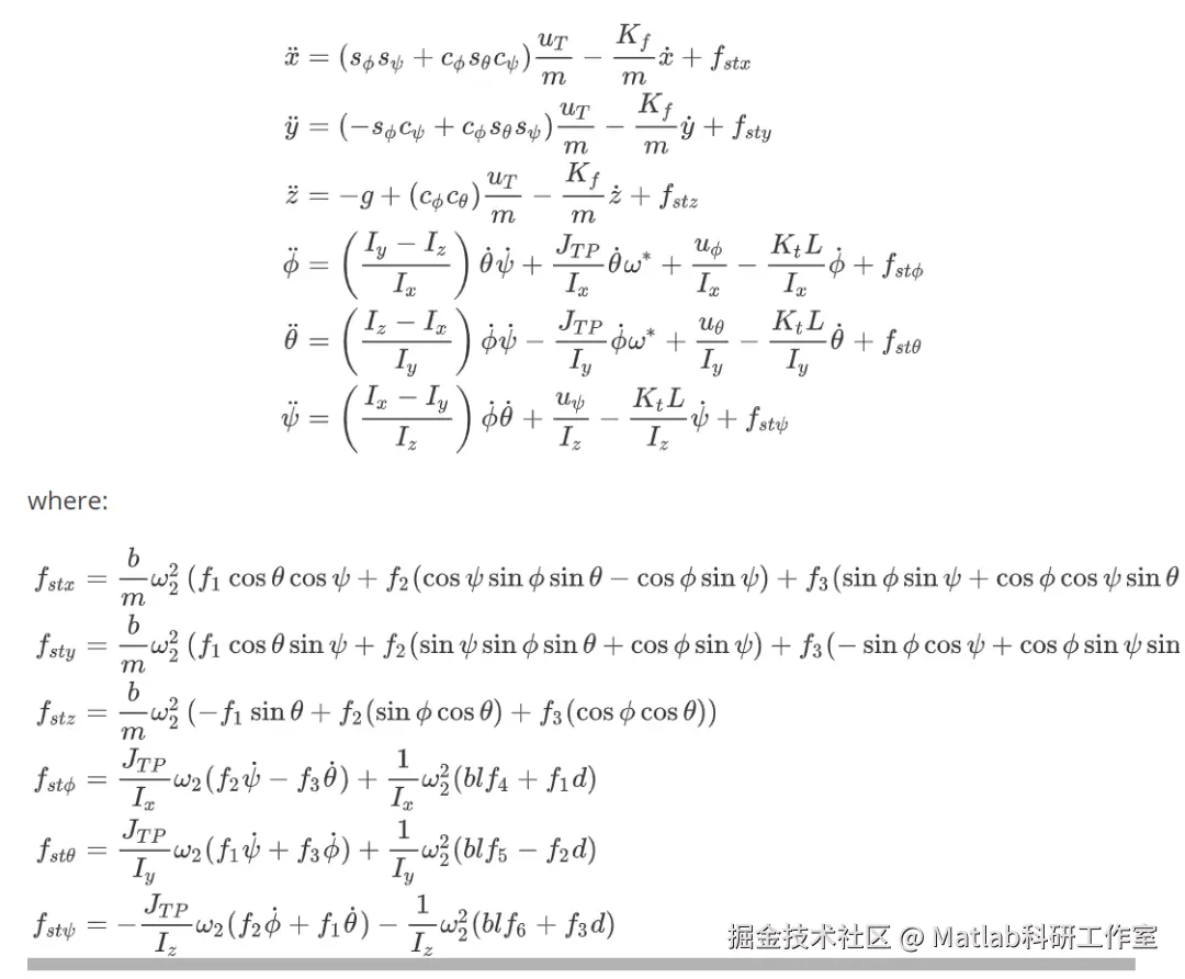 ufx = (b/m)w2_2(+f1*(c(theta)c(say)) + f2(c(say)*s(phi)*s(theta) - c(phi)s(say)) + f3(s(phi)*s(say) + c(phi)*c(say)*s(theta)));
