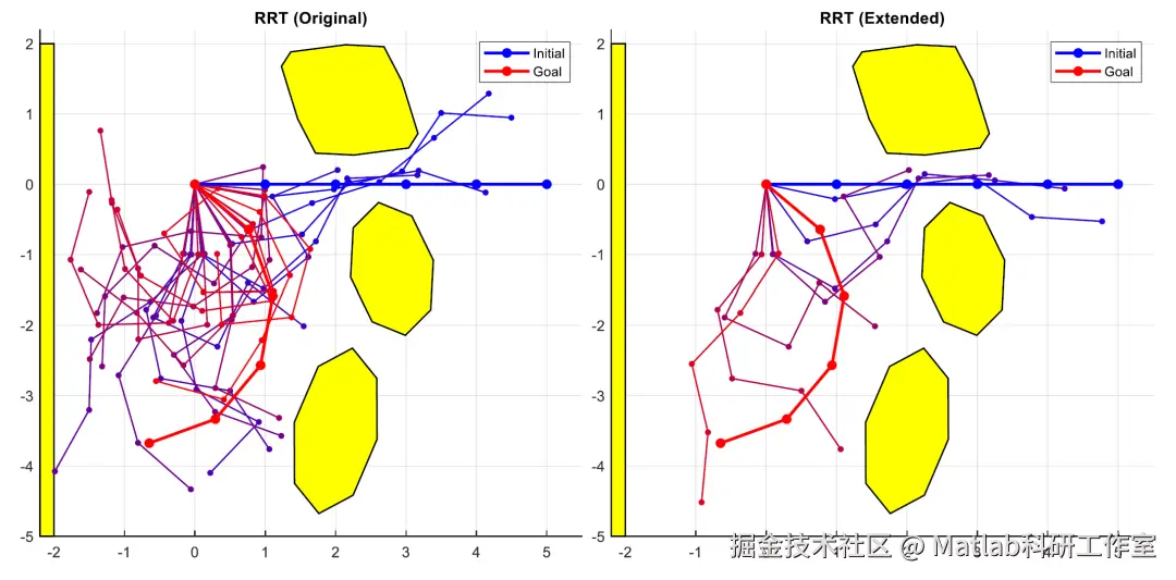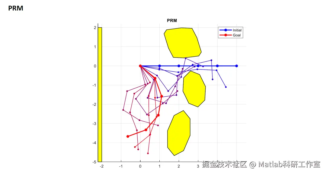 RRT 算法凭借随机采样、快速探索的优势,能高效应对高维空间规划问题;RPM 算法通过预构建路线图,可实现多目标任务的快速路径查询,二者分别适配 “单次复杂规划” 与 “多次重复规划” 场景。本文针对二维连杆机器人(以三连杆为例),构建运动学模型与避障约束,实现 RRT 与 RPM 两种算法的路径规划,通过仿真对比其性能差异,为工程选型提供科学依据。