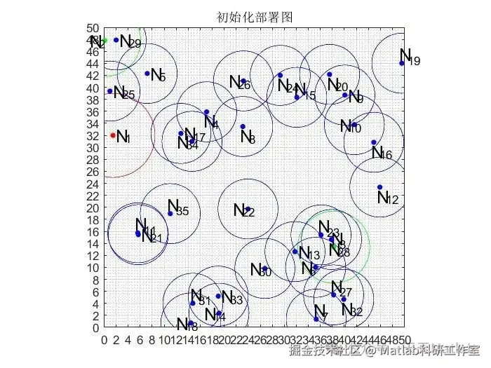 1. 初始化:设定烟花数量、最大迭代次数、监测区域大小、传感器节点的感知半径、初始能量等参数。随机生成初始的传感器节点部署方案作为烟花的初始位置。