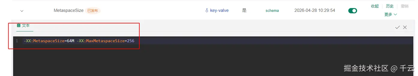-XX:MaxMetaspaceSize:该参数用于限制元空间大小,设置不合理(尤其是过小)会直接引发溢出。- 建议:根据应用的类加载规模(如使用了Spring、动态代理、CGLIB等技术)合理设置。对于复杂应用,256MB可能偏小,建议结合实际监控数据(如通过