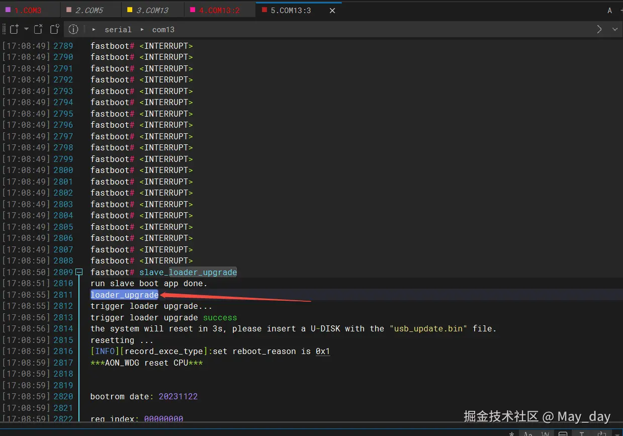 ③打开WindTerm连接主板,上电同时按住ctrl+C 不放进入fastboot模式后,输入loader_upgrade进入烧录模式