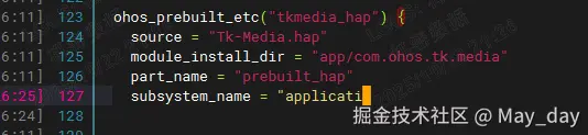 ②检查并修改构建配置文件(BUILD.gn) 系统应用的编译通常由 BUILD.gn 管理依赖,需确保构建系统不再尝试引用该应用: 1. 进入 applications/standard/hap 目录,编辑 BUILD.gn 文件; 2. 在 BUILD.gn 中找到对 Tk-Media.hap 的目标声明或依赖配置 (例如 ohos_prebuilt_hap 或 group 中的引用),将其删除。 示例(假设原配置): gn ohos_prebuilt_hap("Tk-Media") { source = "Tk-Media.hap" # 其他配置... } 删除整个该目标的声明块。