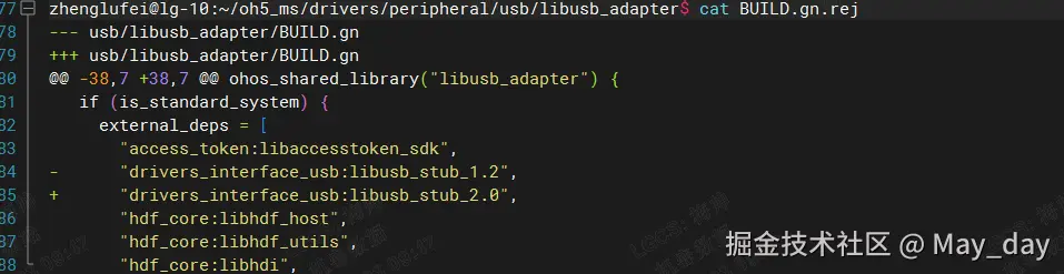 在构建过程中出现了补丁冲突导致的构建失败,于是检索并打开这个冲突文件: