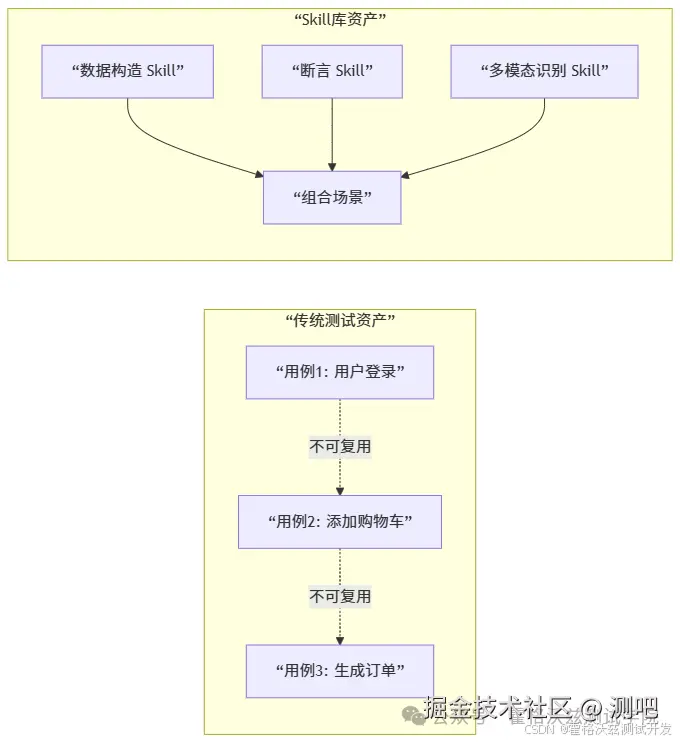 观点句2:测试Skill不是“调API”,而是把测试经验编码成可执行的逻辑规则。
