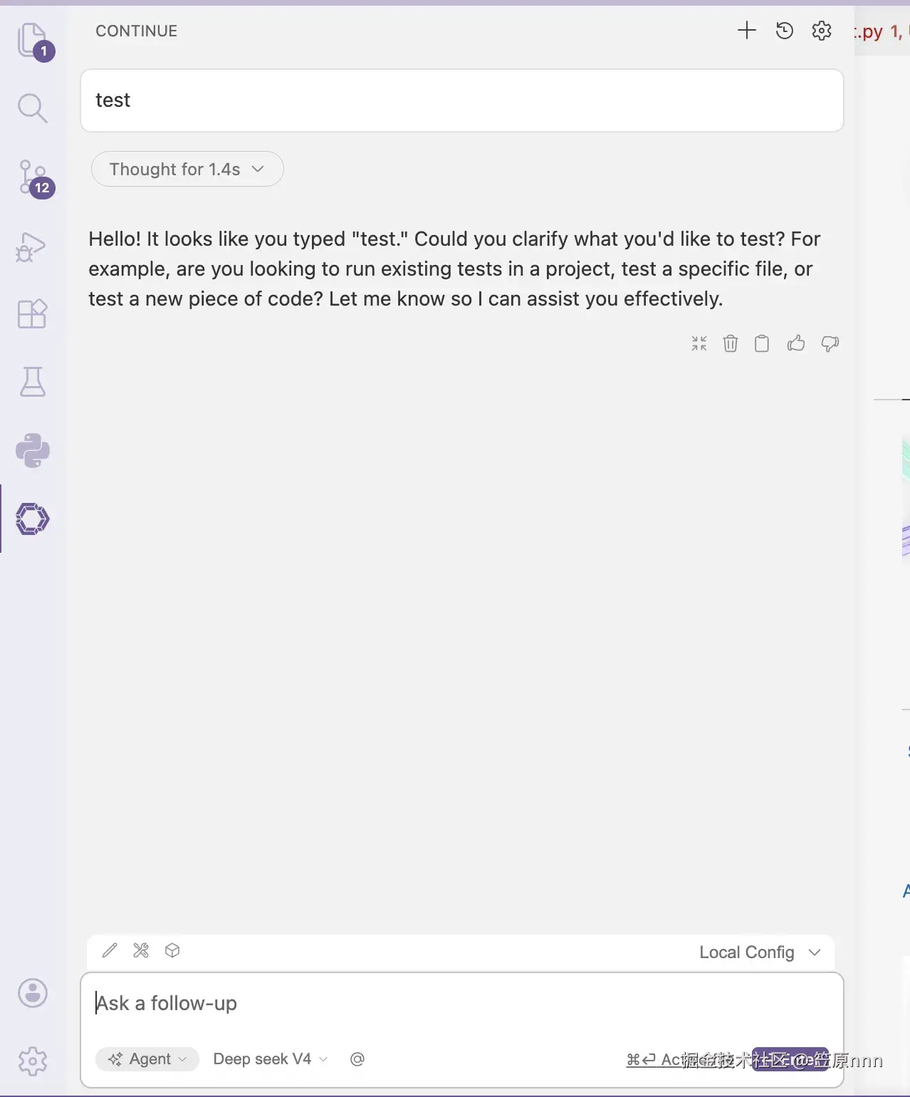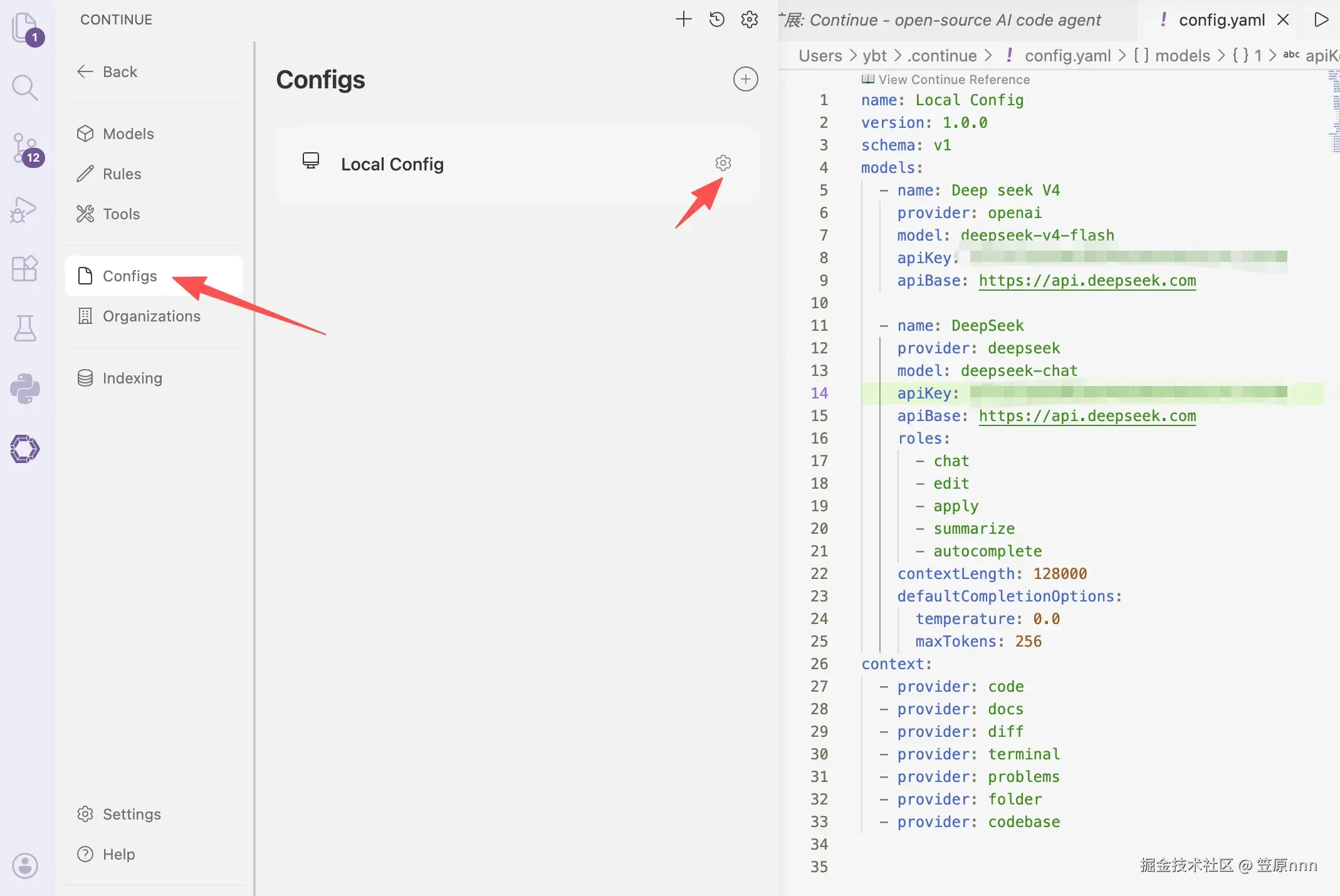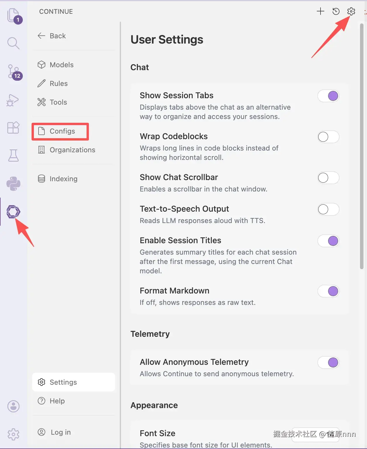 侧边栏会增加continue图标
