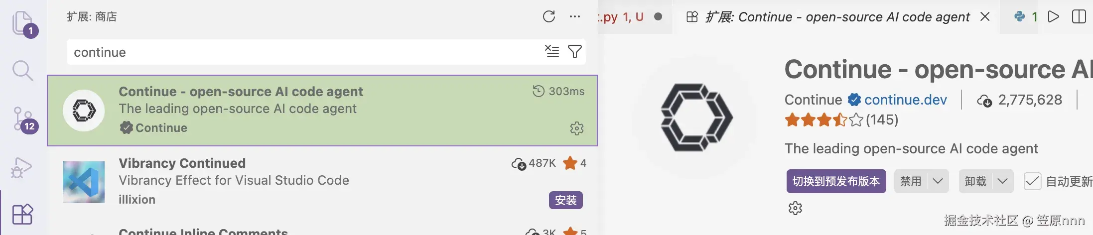 扩展搜索continue安装