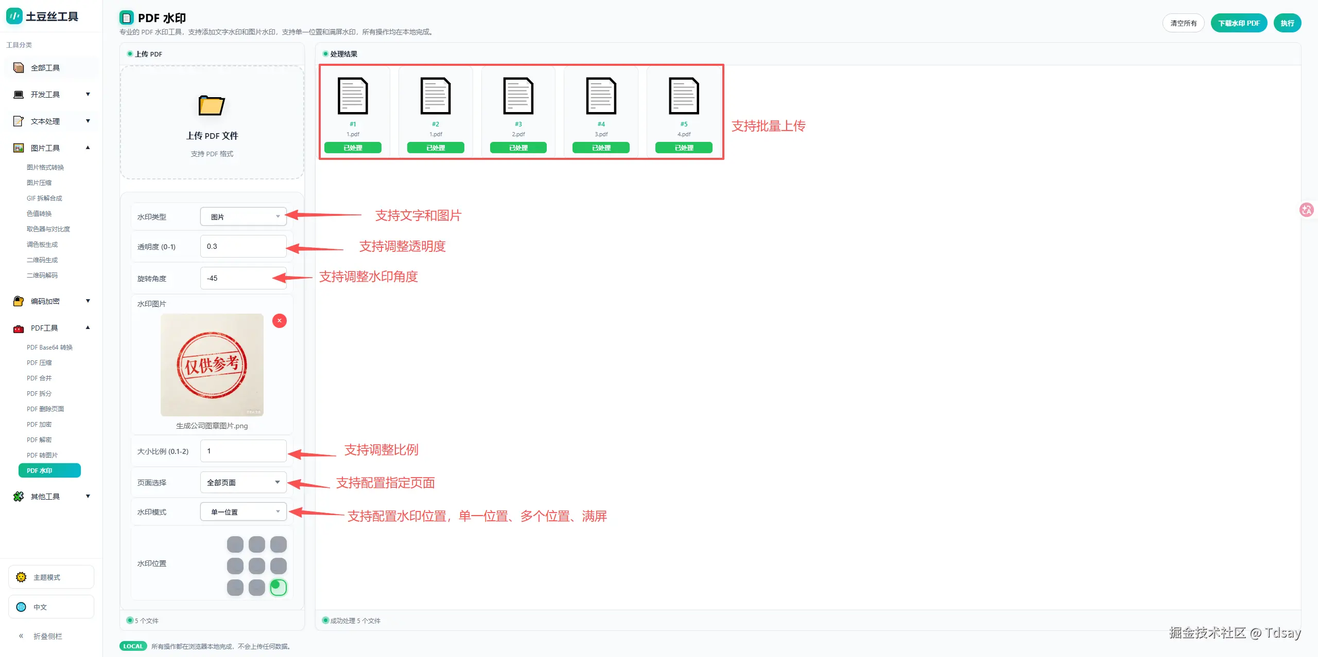- 支持批量处理PDF: 目前市面上也有不少类似的在线工具,但是基本都是只支持单个文件处理,或者一次处理多个就需要收取费用,但是这个工具支持很多的文件批量处理。