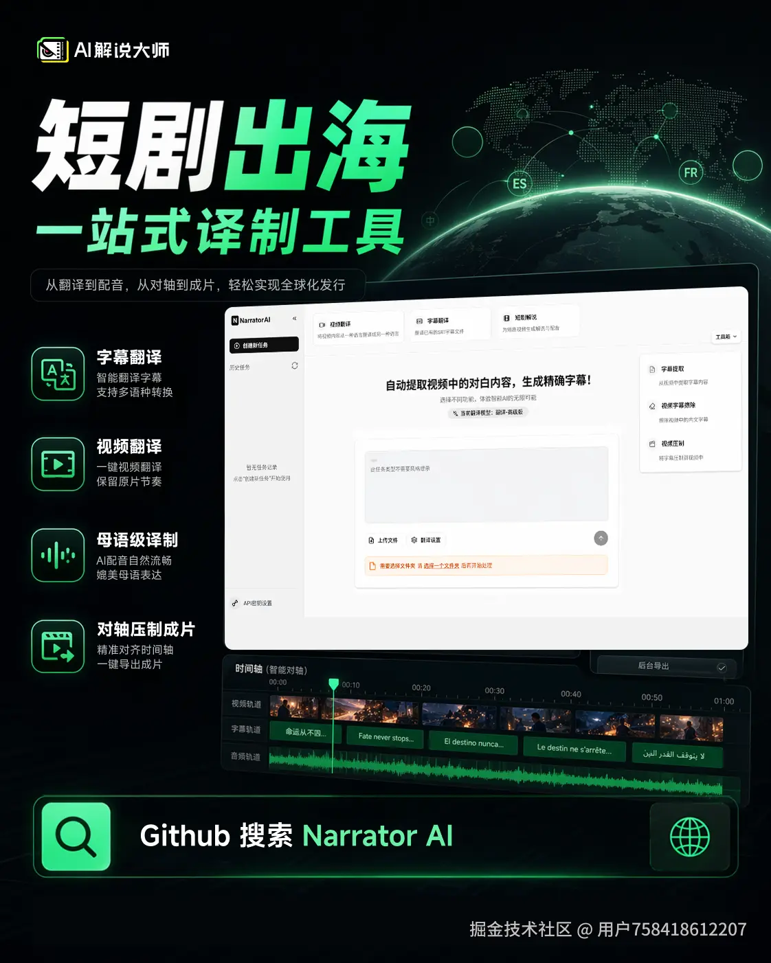 #短剧出海#短剧翻译#译制剧#内容本土化#翻译#短剧全球化#AI翻译#多语种翻译#AI配音#开源工具推荐