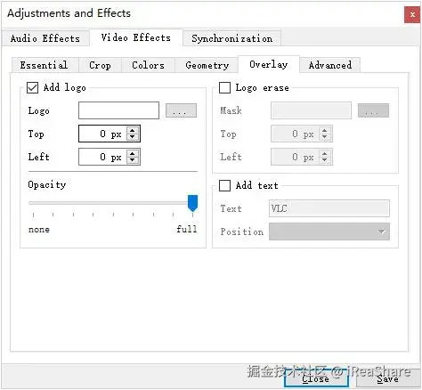 导航至“视频效果”选项卡,然后选择“叠加”子选项卡。接下来,选中“添加徽标”复选框,然后浏览并选择您的图像文件。