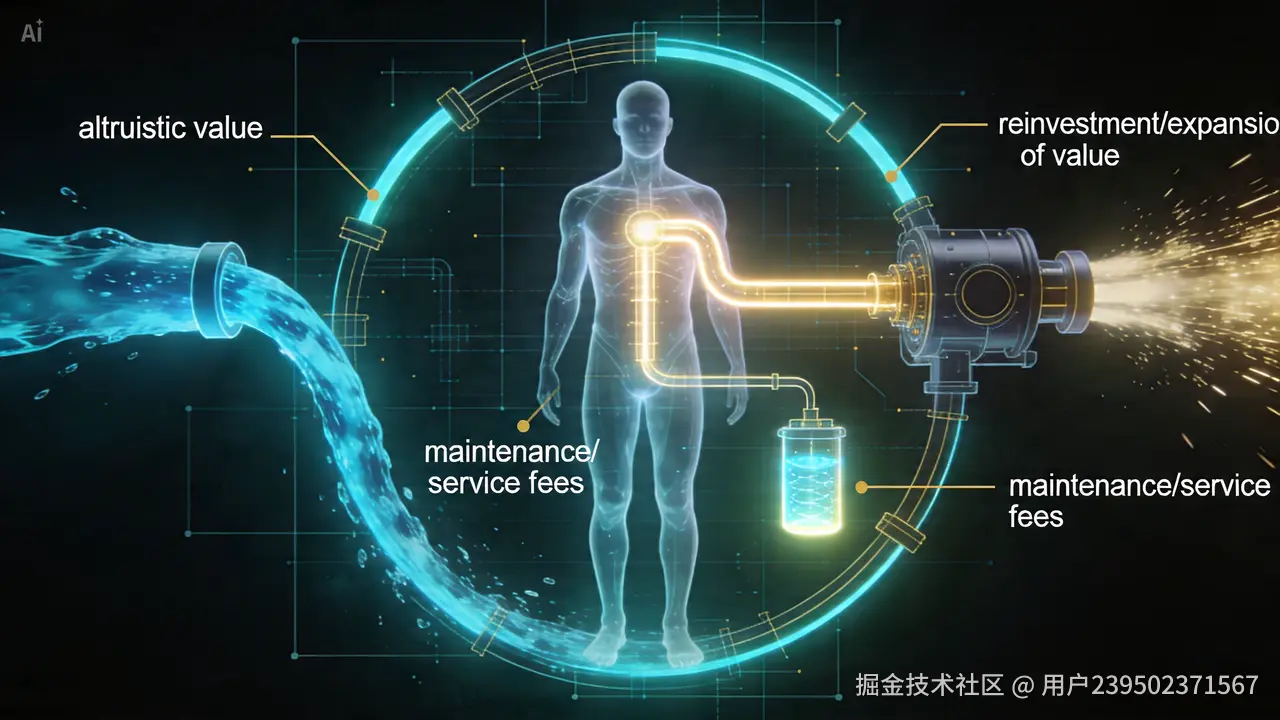 在三维世界维持肉身生存、支付员工工资、购买设备,需不需要钱?绝对需要。当你作为一个"高能管道",在为社会疏通低频淤泥(利他)时,宇宙的低频能量(金钱)必然流经你。从中抽取一部分留下来(赚钱),这叫"过路费"或者"管道维护费"。(比喻)