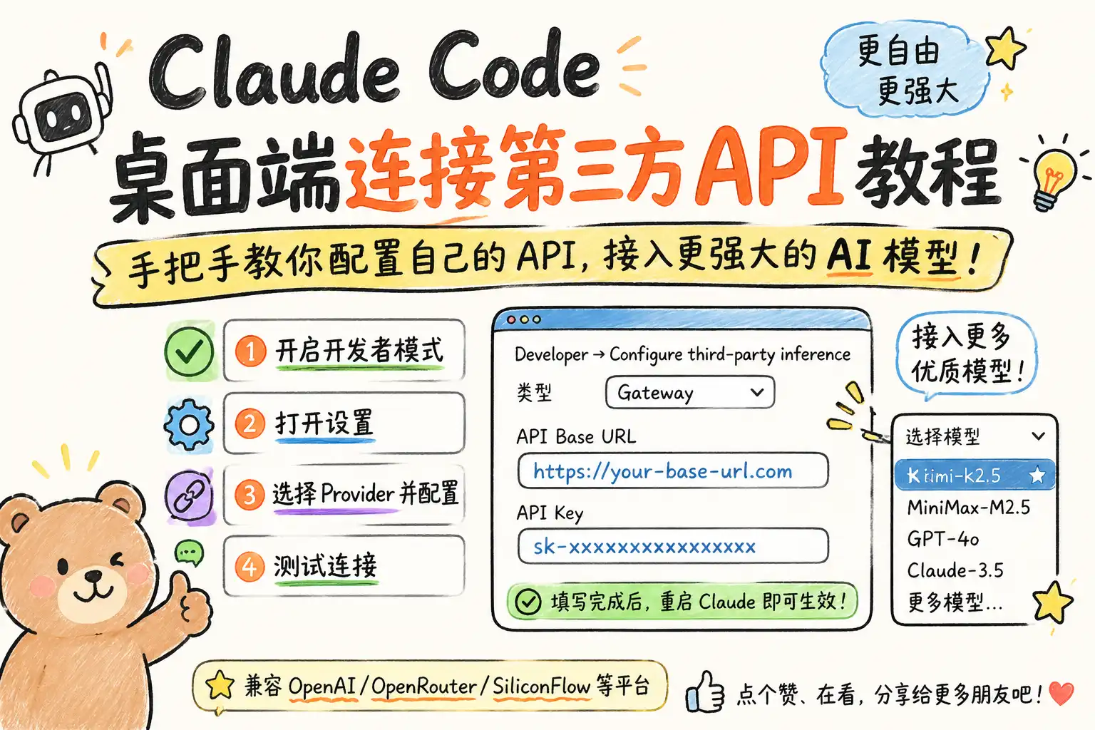 手把手教你配置自己的 API,Claude Code 桌面端 也可以使用,接入更灵活的 AI 模型