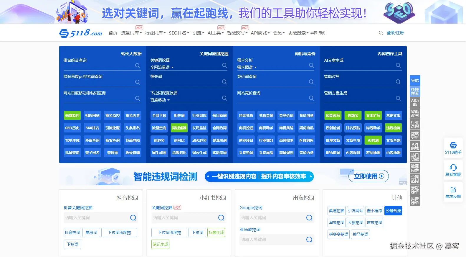 5118是国内SEO与内容营销领域的头部数据平台,近年来全面加入AI能力,成为内容创作者的AI选题助手。