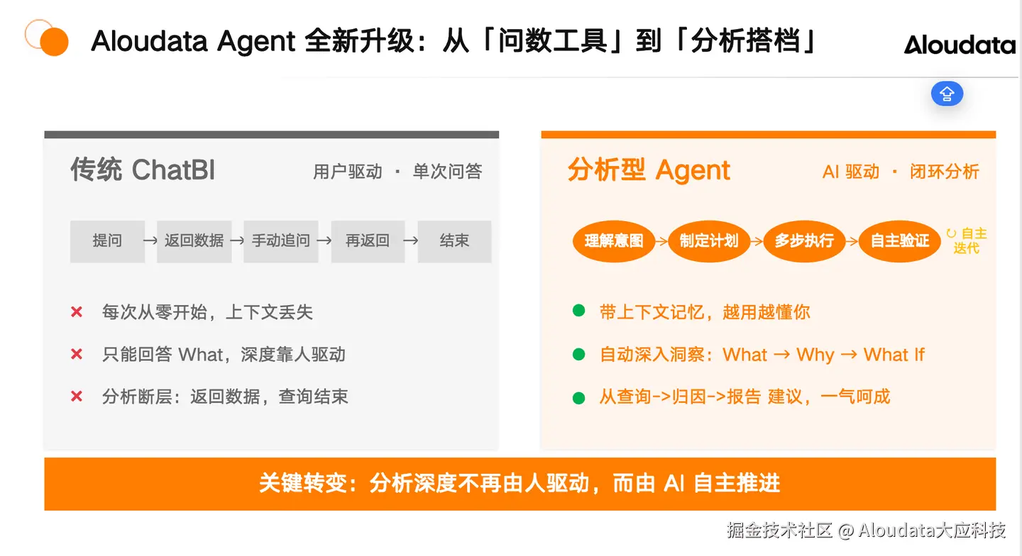 Aloudata Agent vs 传统 ChatBI:从“ 由人驱动”到“AI 自主推进”