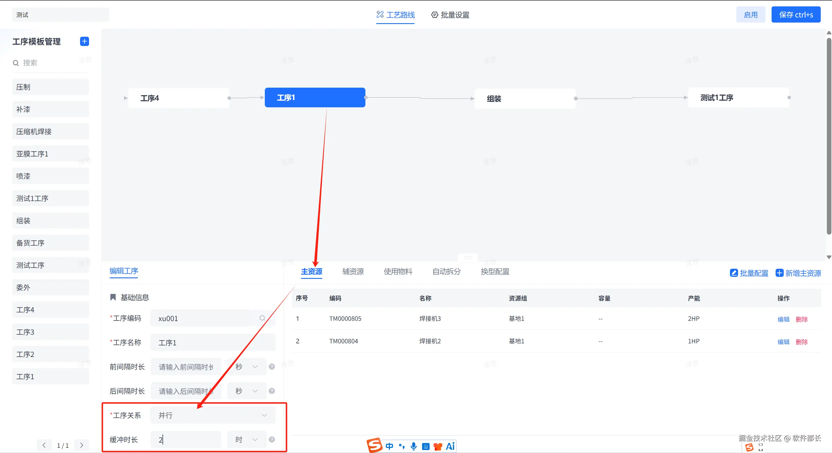 - 设置缓冲时长:系统支持以天、小时、分钟为单位,设定前后工序的“重叠时间”。例如:前工序开始生产 2 小时后,后工序即可启动;或者前工序完成 50% 的数量后,后工序开始投料。