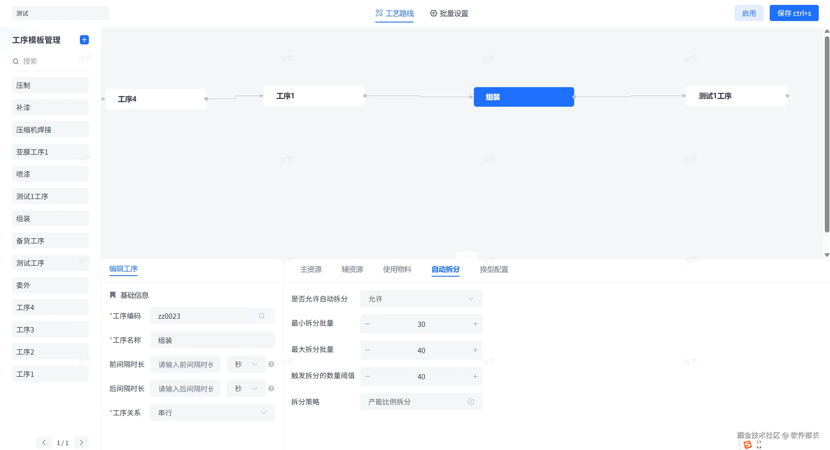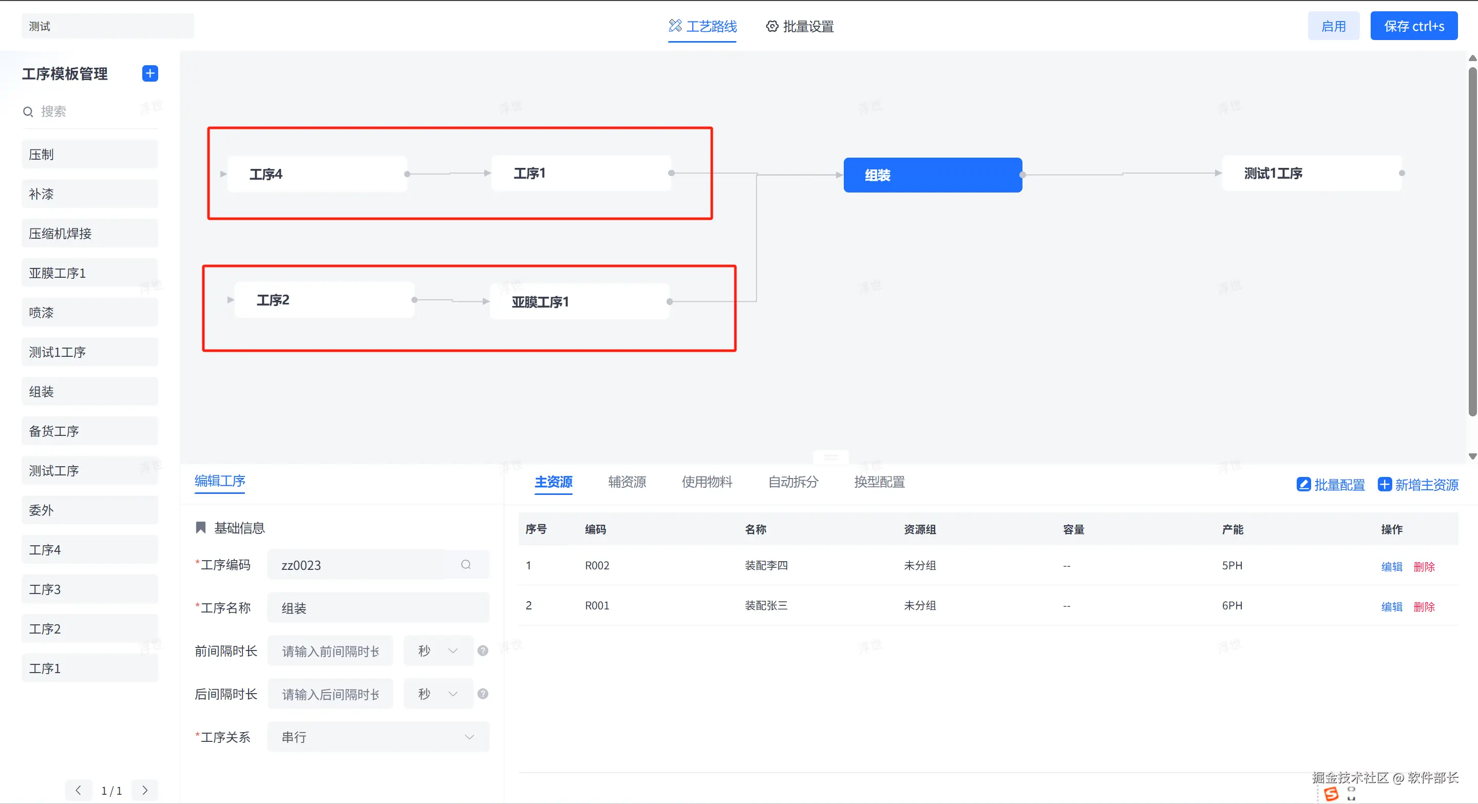 - 合流节点控制:将多个平行工序分支,通过连线聚合到同一个“总装/合流”工序上。