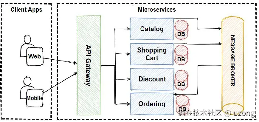 如果我们使用微服务架构设计电子商务应用,您可以看到下面的图片