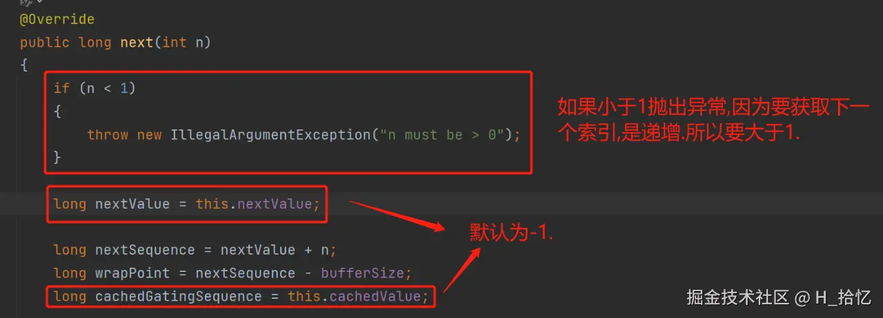 ringBuffer的next方法: