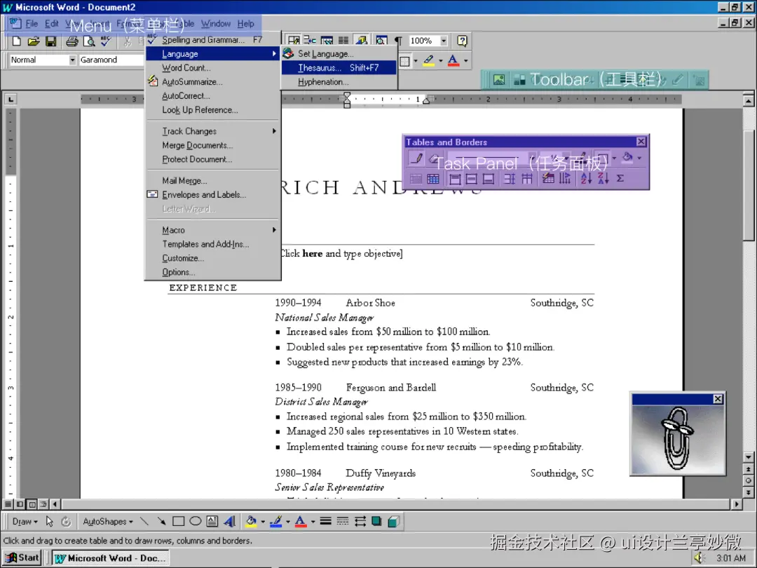 2.认知不足:设计师对于客户端、网页端的设计理解认知本身不够,做得较为粗糙,比如当时的 Office 的界面设计也大致是如此的模样