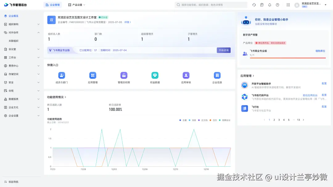 2022-2024年,飞书、有赞、微盟、ONES、Coding、Ant Design、Salesforce等主流B端产品不约而同地更新了界面风格——灰白风。北京兰亭妙微设计公司分析认为,这种以灰色划分副信息、白色承载核心信息的设计,能够减少信息层级给用户减负、让产品更容易嵌入钉钉/企微/飞书三大平台、且更易于多产品多端适配。本文以飞书管理后台三次迭代为例,拆解灰白风的设计逻辑与商业价值。