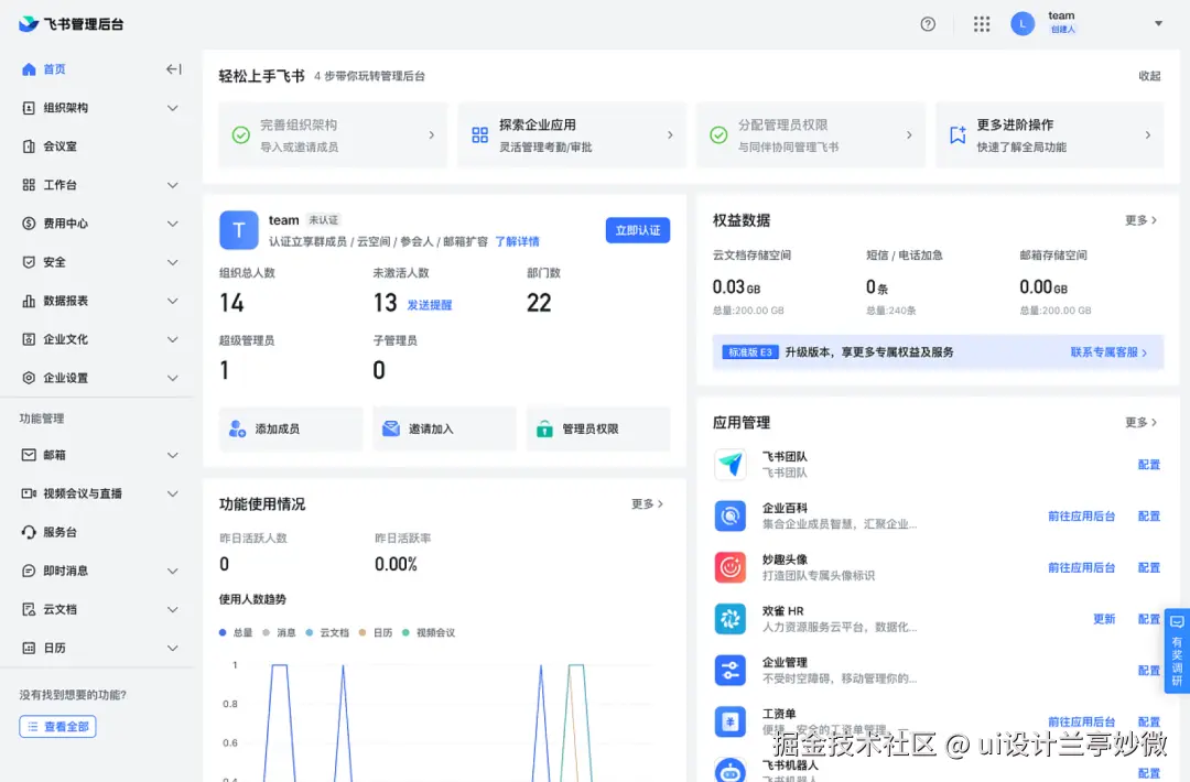 在 2022 年,飞书的管理后台开始改变为灰白风格