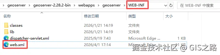geoserver\geoserver-2.28.2-bin\webapps\geoserver\WEB-INF数据目录,打开web.xml文件。