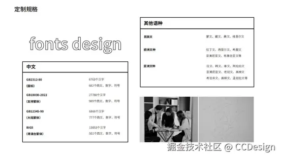 目前,字魂支持提供涵盖品牌字体、家族及可变字体、LOGO字体、特定场景小字库、多语种匹配等在内的多元灵活的专业字体设计定制服务。服务范围包含涵盖中文、西文、拉丁文、日文、韩文等超16种语种,和GB2312-80简体(6763个汉字+682个西文、数字、符号)、GBK、BIG5等不同国家标准,并已为文旅、影视、金融、潮流领域的35+品牌、机构和IP打造过成功定制案例。