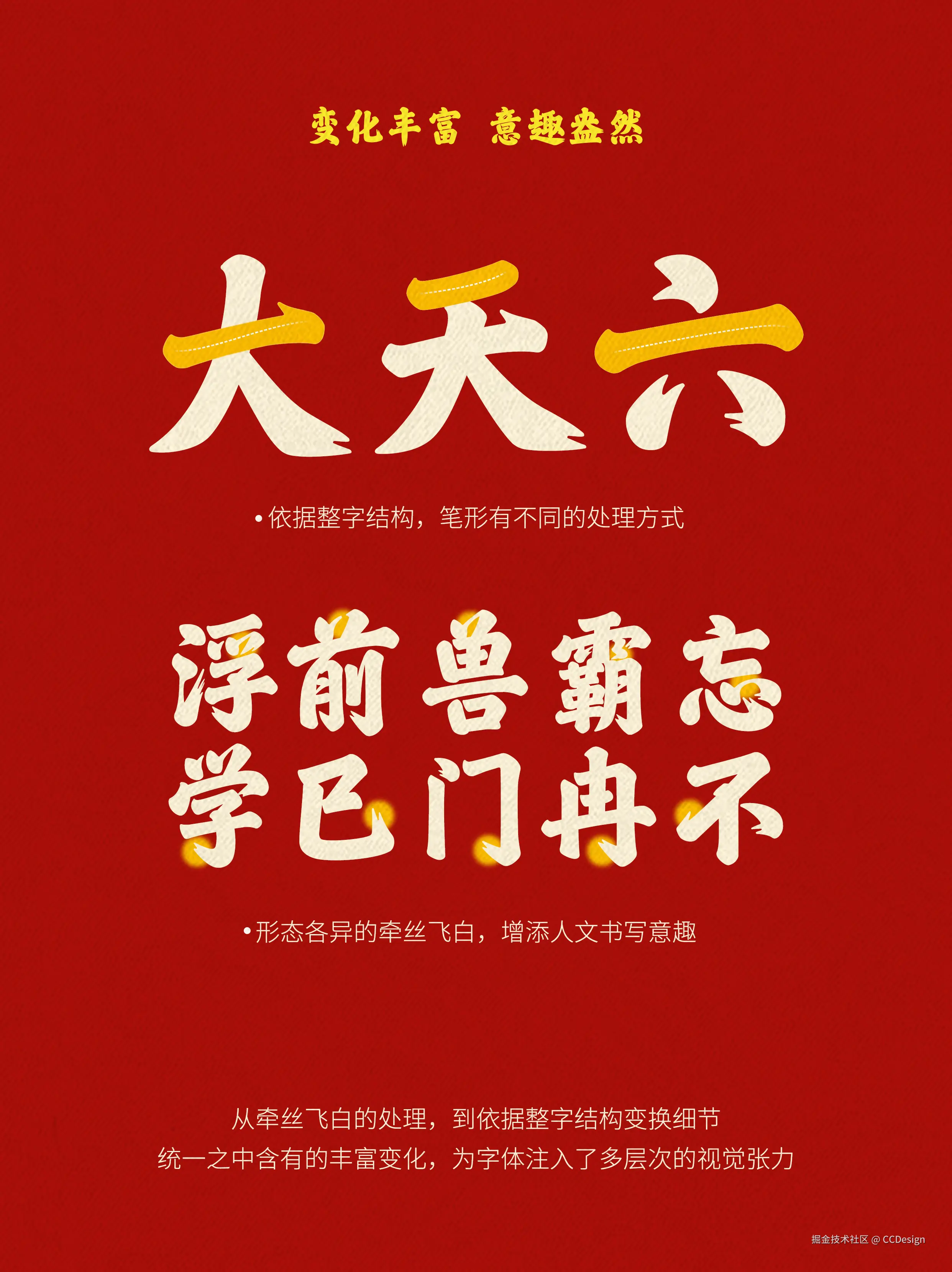 在细节处理上更是变化丰富、意趣盎然,从牵丝飞白的细腻营造,到依字形结构灵活调整笔画细节,于统一规范之中蕴藏丰富变化,为字体赋予层次饱满的视觉张力。