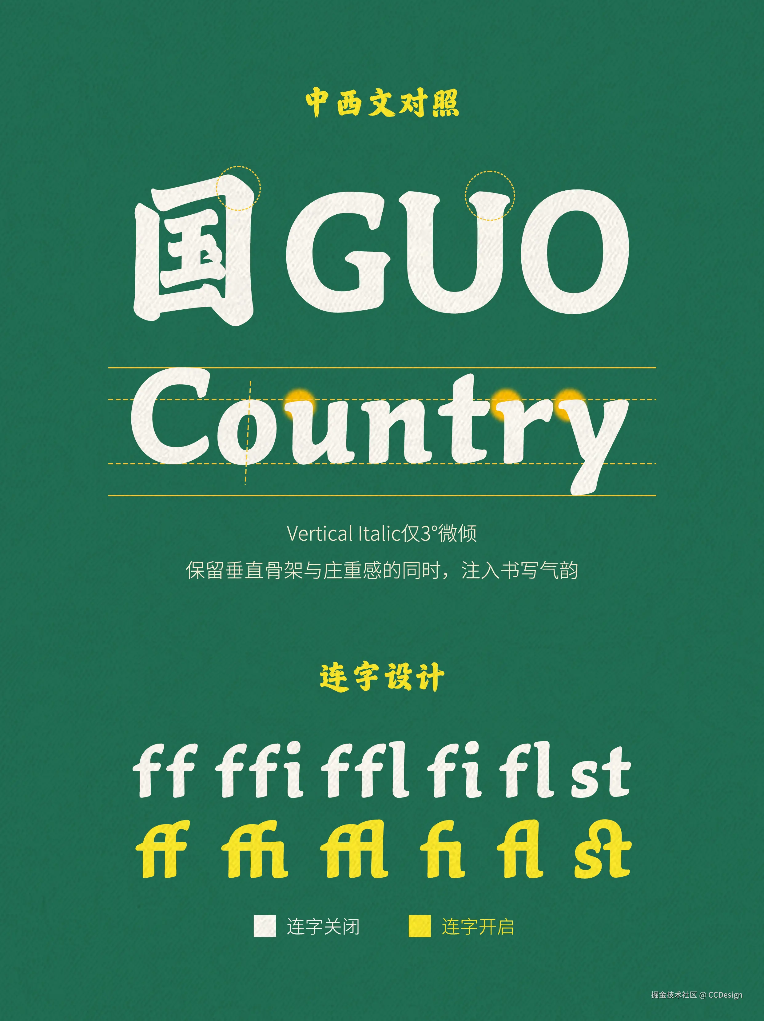 此外,字体配套西文以 15 世纪经典书法为创作基底,采用 Vertical Italic 风格灵感与书写姿态,在简化字形的同时强化软笔书法质感,整体兼具文艺复兴时期书法人文体的优雅美感与 Italic 字体的书写韵律,笔画间融入专属装饰风格,不刻意追求与中文字形一一对应,而是实现中西美学意蕴的通融呼应,小写部分则在保留核心设计特点的基础上适当弱化装饰以提升阅读体验,无论作为标题、正文独立使用,还是与中文搭配组合排版,均能呈现出和谐统一、高级雅致的视觉效果。