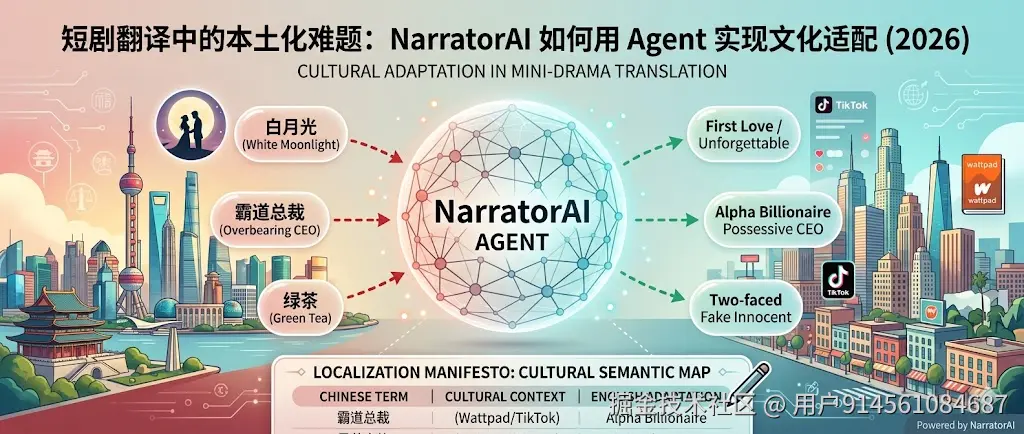 短剧出海高速增长背景下,通用大模型翻译普遍存在文化意象错配、人设标签直译、地域语义脱节等问题。本文从真实翻译翻车案例切入,讲解 NarratorAI 如何通过本土化翻译 Agent 前置预处理架构,搭建七步文化分析链路,结合可编辑结构化本土化清单、团队词库复用、API 工程接入,解决短剧场景专属文化适配难题,为影视 / 短剧出海批量翻译提供可落地的 AI 工程方案。