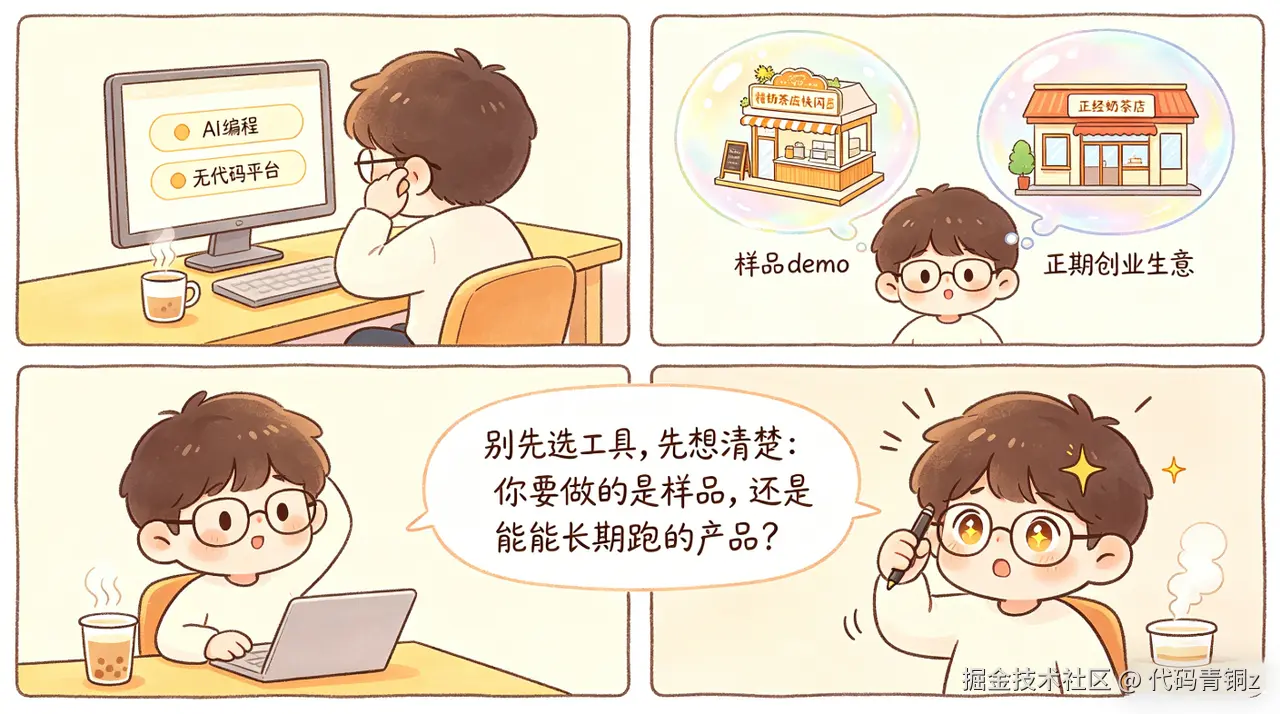 你真正该先想明白的,从来不是 “用什么工具”,而是:你要做的,只是一个给人看看的样品 demo,还是一个要给真实用户用、能长期赚钱、能持续迭代的正经创业产品?