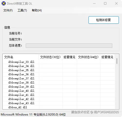 软件是联想内部的修复工具,主打DirectX组件修复,内部纯净简洁无弹窗,点击“检测并修复”就可以自动扫描系统内损坏或缺失的DirectX组件。