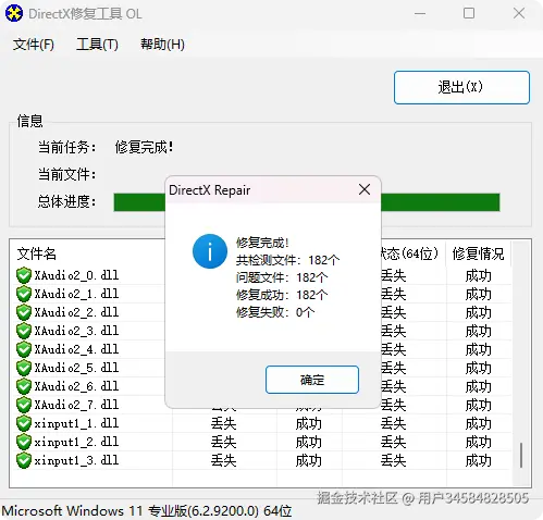 扫描过程中会自动下载匹配的文件去替换异常的组件,然后展示这些DLL文件的状态和修复情况,全程都不用手动去干预。