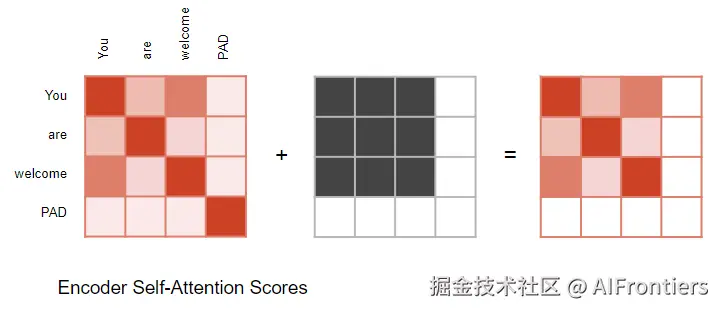 在计算注意力分数时,注意力模块会执行一个掩码步骤。掩码有两个目的: