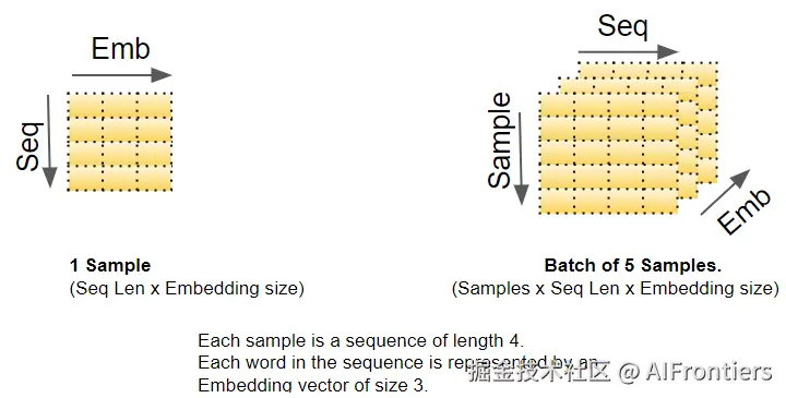 我们知道,深度学习模型一次处理一批训练样本。嵌入层和位置编码层操作的对象,是代表一批序列样本的矩阵。