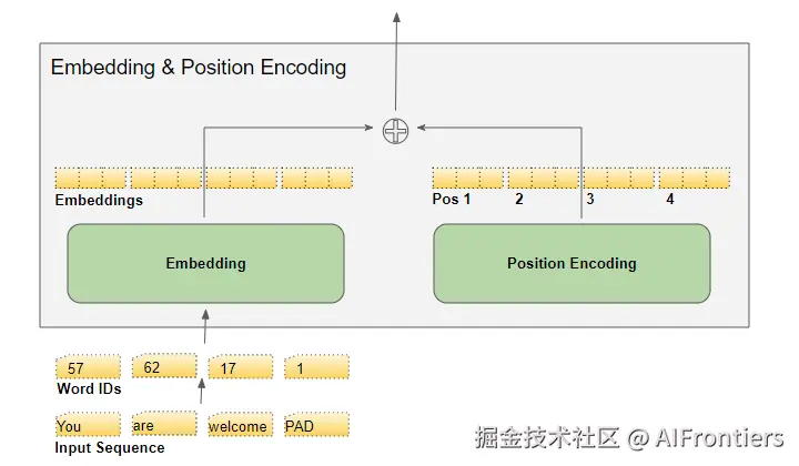 Transformer 把这两部分编码直接相加,合二为一。
