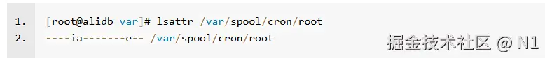 通过lsattr核查文件属性,发现核心定时任务文件被添加ia双重锁定属性: