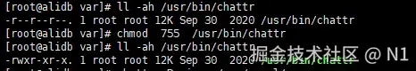黑客恶意将chattr设置为只读权限,阻断解锁操作,首先恢复命令执行权限: