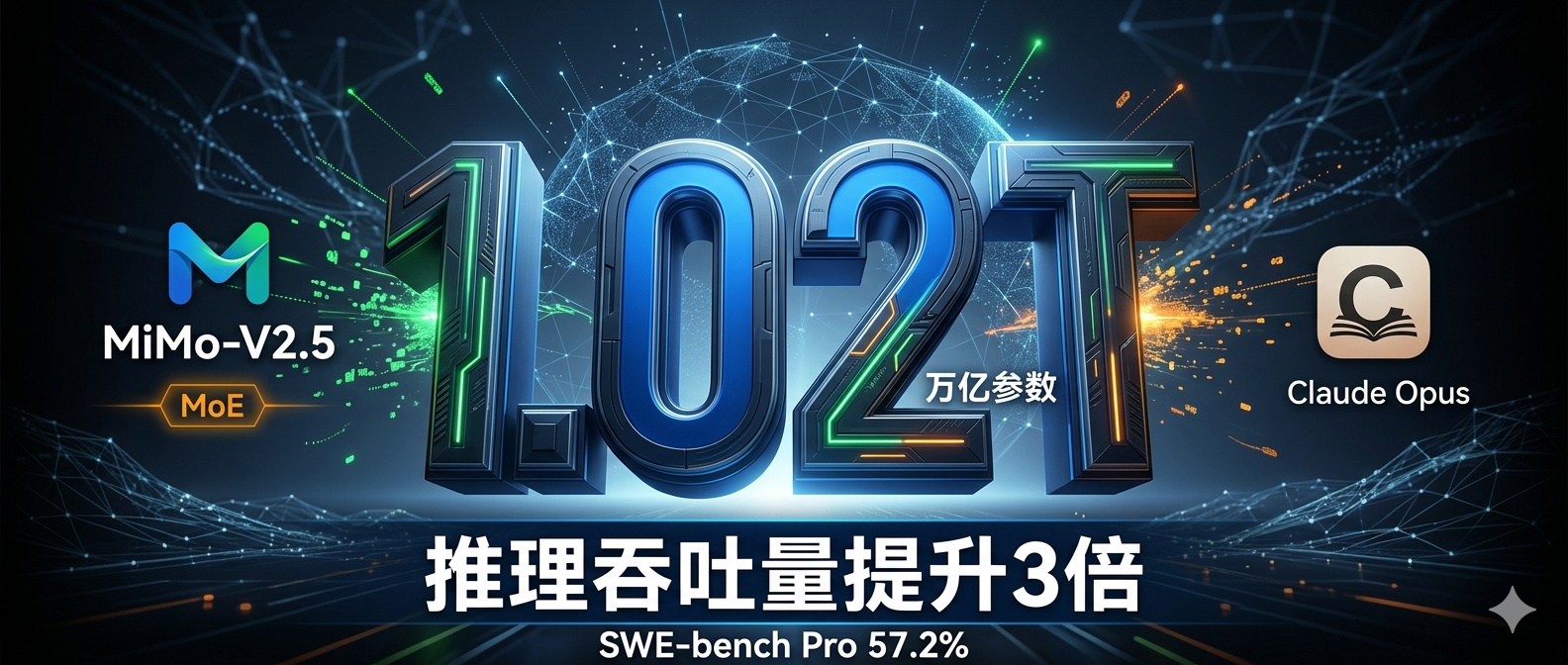 小米最新发布的MiMo-V2.5模型在开发者社区引发广泛关注。总参数1.02万亿(是GPT-4的78倍),活跃参数420亿,推理吞吐量提升3倍,SWE-bench Pro得分57.2%(行业平均25%)。更关键的是,它原生集成了TTS+ASR双模态语音能力,定价只是Claude Opus的六分之一。