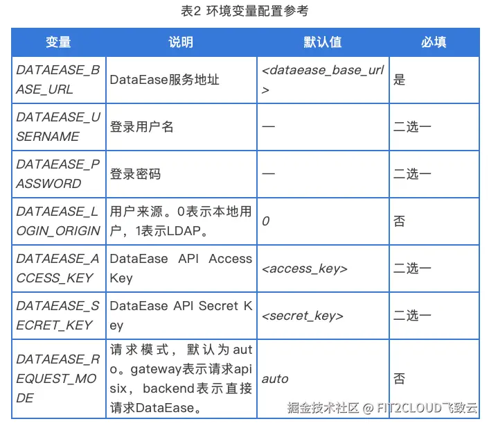 需要说明的是,用户只需要选择“登录用户名/登录密码”和“DataEase API Access Key/DataEase API Secret Key”中的其中一组变量即可完成DataEase环境的配置。如果同时配置了这两组变量,OpenClaw系统会优先使用“登录用户名/登录密码”登录获取新的Token,以确保会话的有效性。