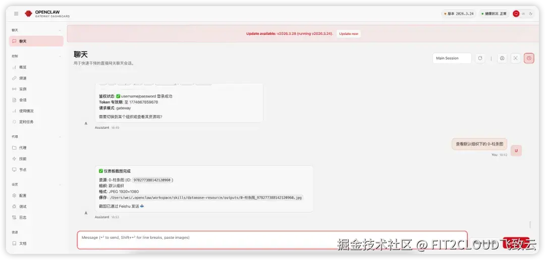 DataEase Skills的部署过程非常简便,支持手动配置或通过AI自动化引导完成。以下是以OpenClaw为例的安装、配置与测试流程示例: