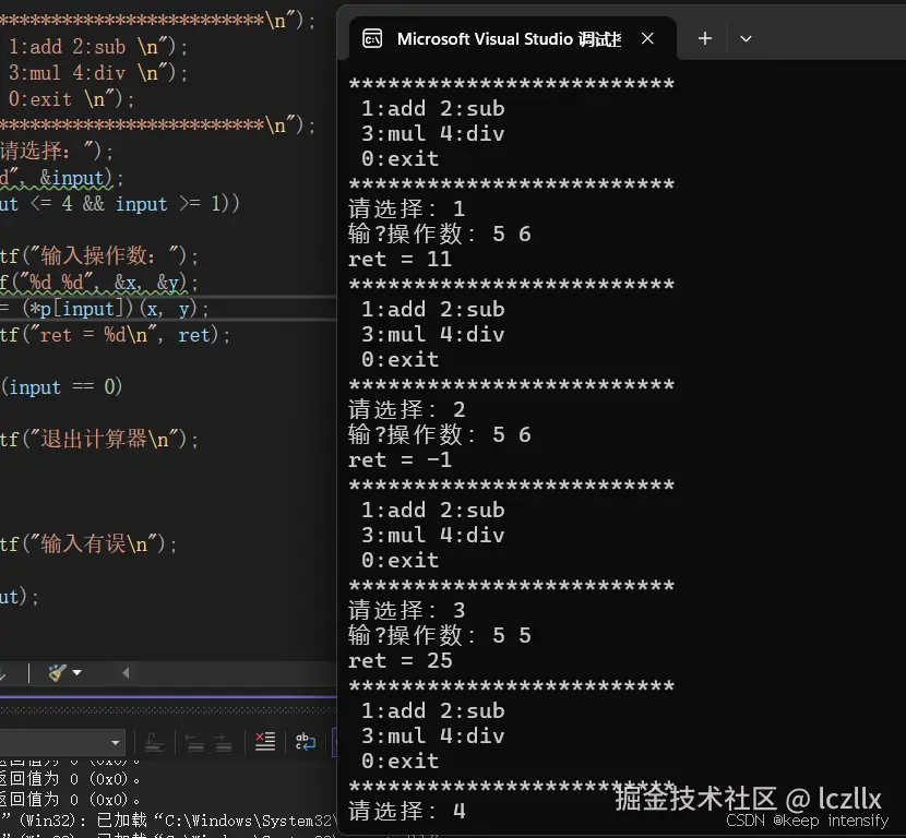 int(*p[5])(int x, int y) = { 0, add, sub, mul, div }; //转移表