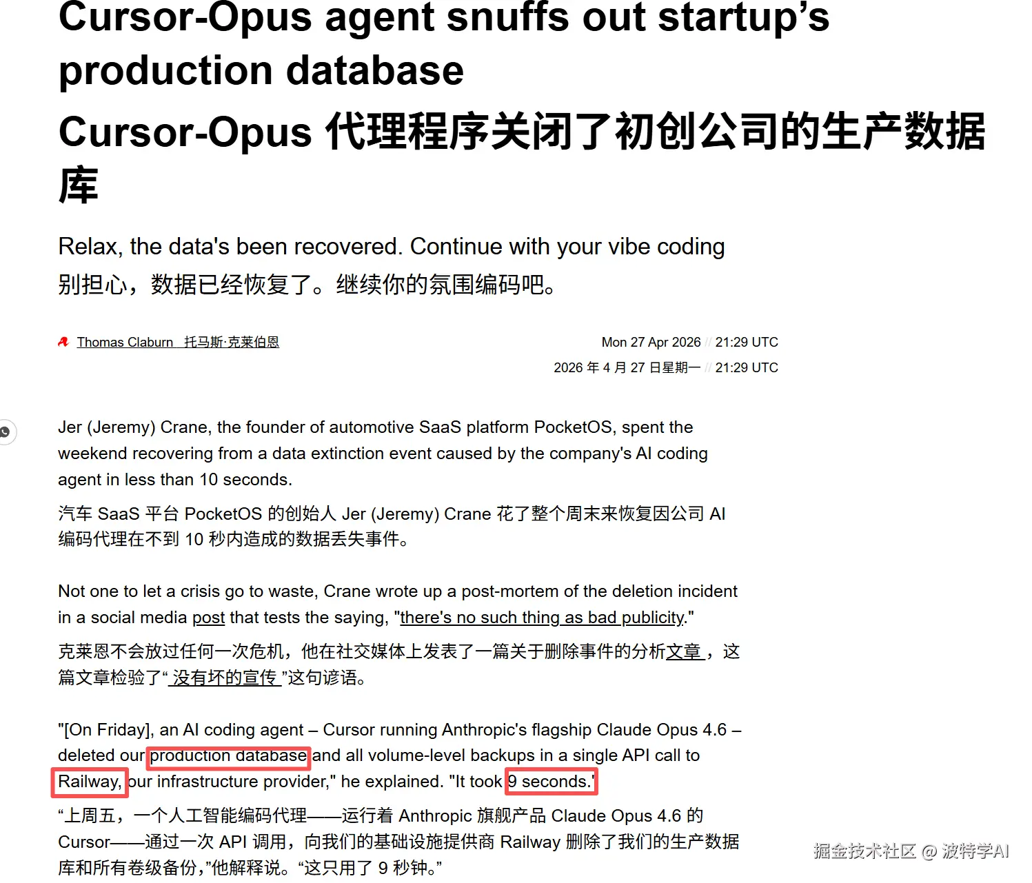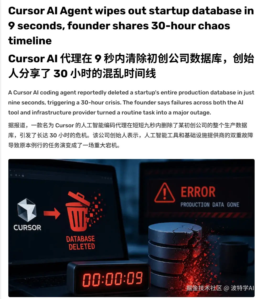 数据救回来了,但问题没消失。这不是一家公司的偶然事故,是 AI 编程助手进入真实工程环境后的必然考题。