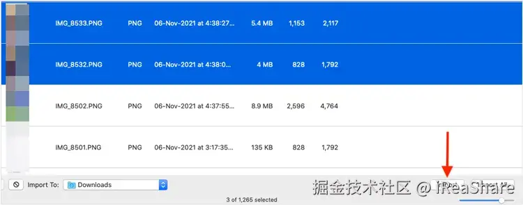 点击“导入”将视频从 iPad 传输到 MacBook。