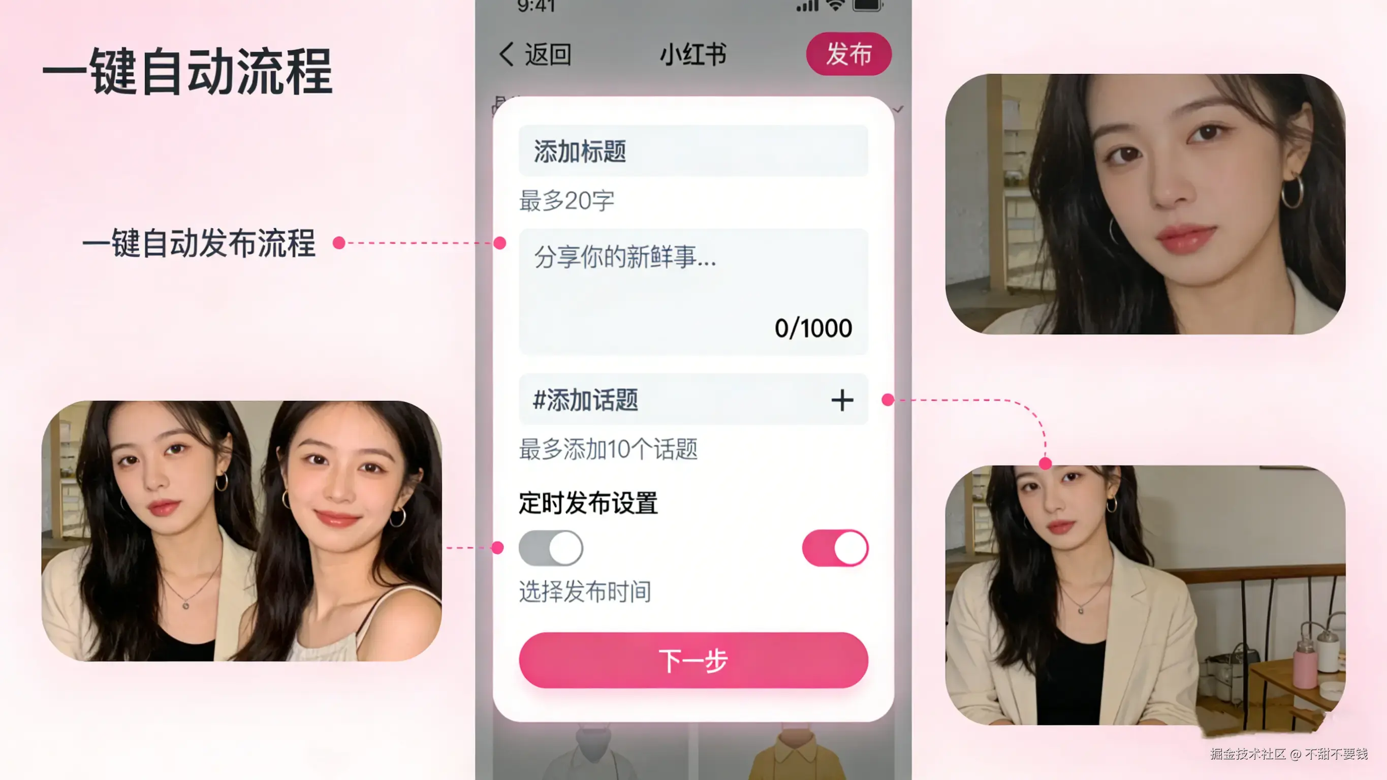 ▶ ・一键发布功能:解析焕新后,可一键直达小红书发布页面,省去所有中间步骤,结合网页及框架自动化技术,一分钟可发布10篇,效率拉满。