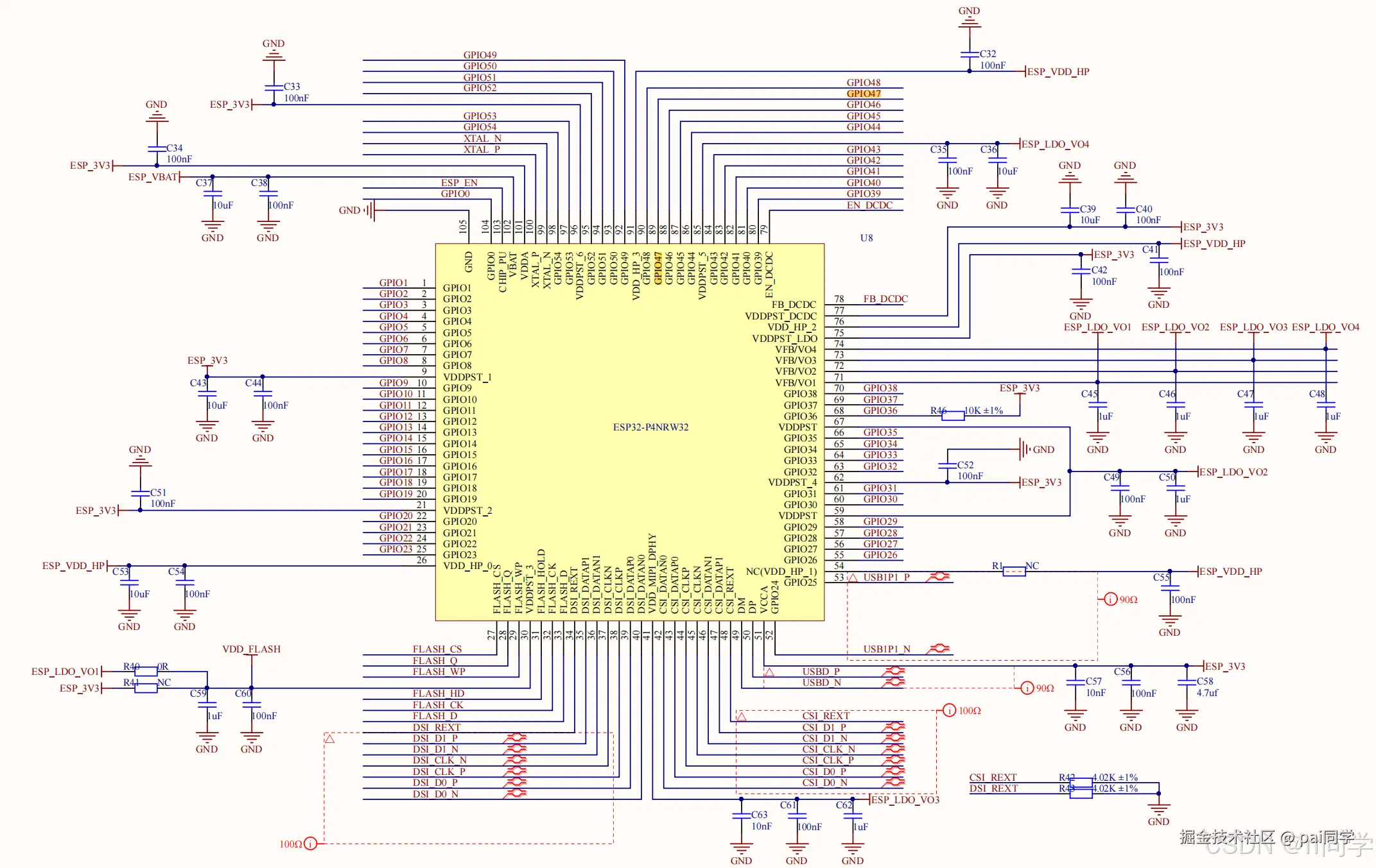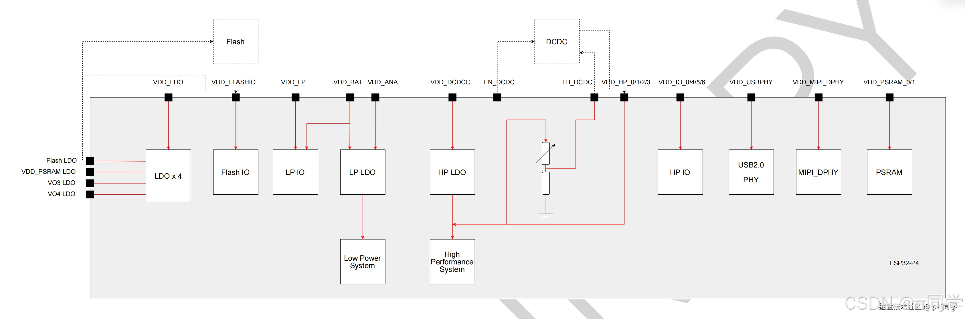 ESP32有个特点,它的IO管脚并不是统一供电的。它的供电来源非常多,本文就以我手中的一款微雪开发板ESP32-P4-Module-DEV-KITE为例,来统计一下这些引脚的供电来源。并完成LDO驱动。